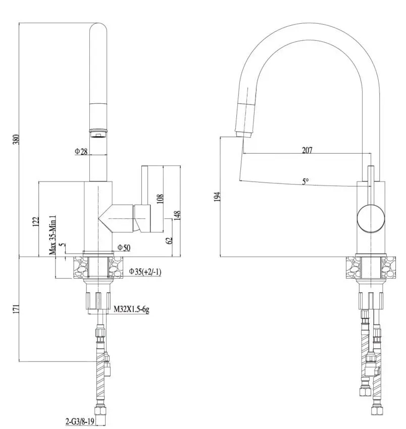 Miscelatore monocomando per lavello Delos con estremità estraibile