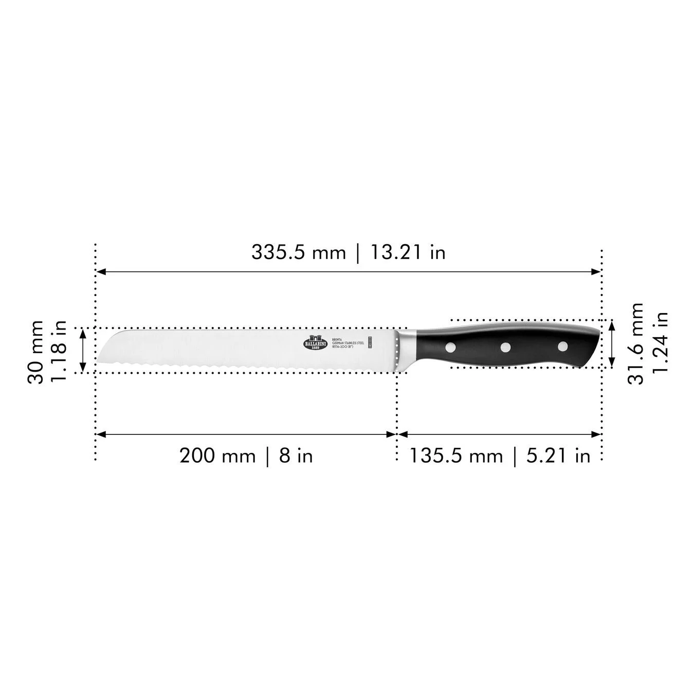 Il coltello da pane BALLARINI Brenta è il vostro affidabile partner in cucina quando si tratta di tagliare pane, panini, ciabatta o bruschette. Le croste dure che rendono così delizioso il pane italiano sono anche ciò che lo rende difficile da tagliare.