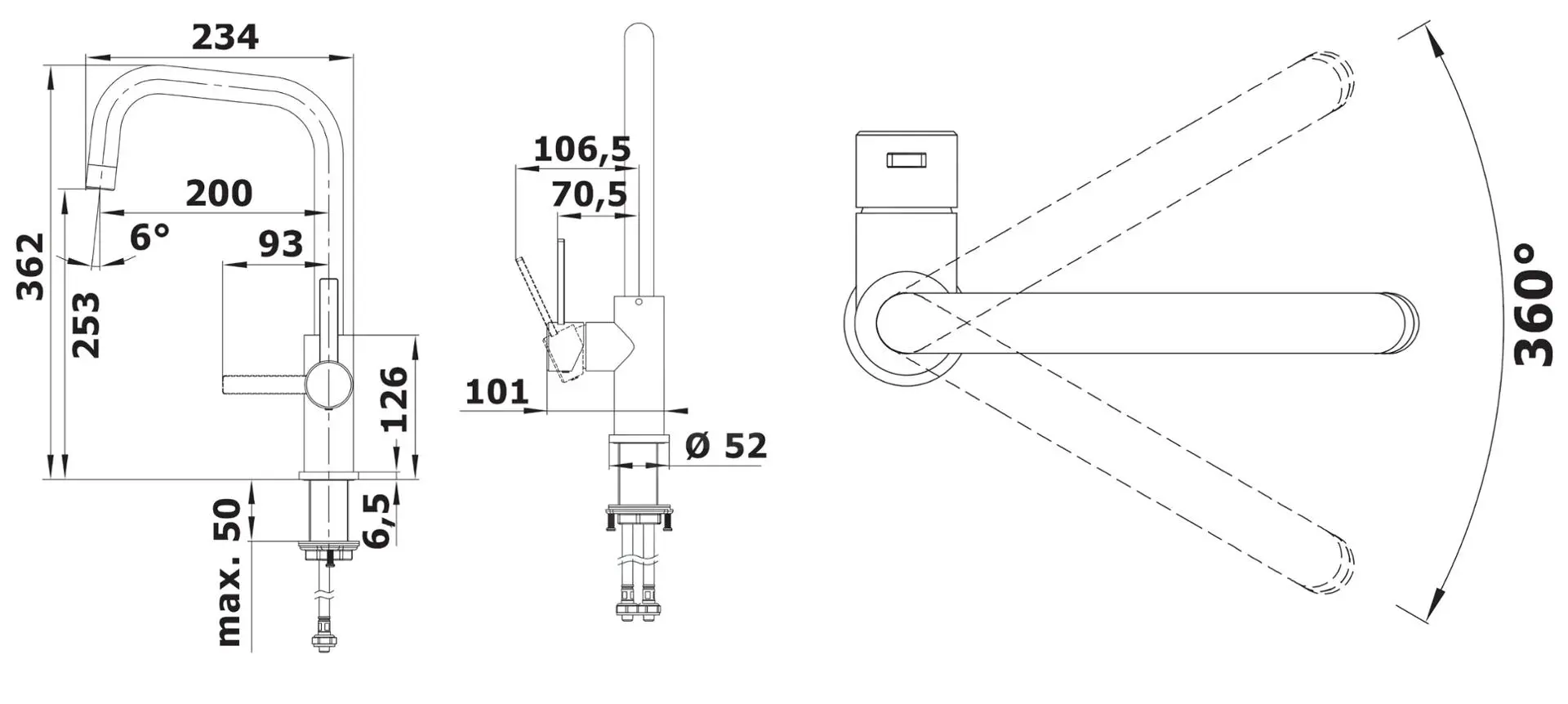- braccio di erogazione girevole, rotazione fino a 360°