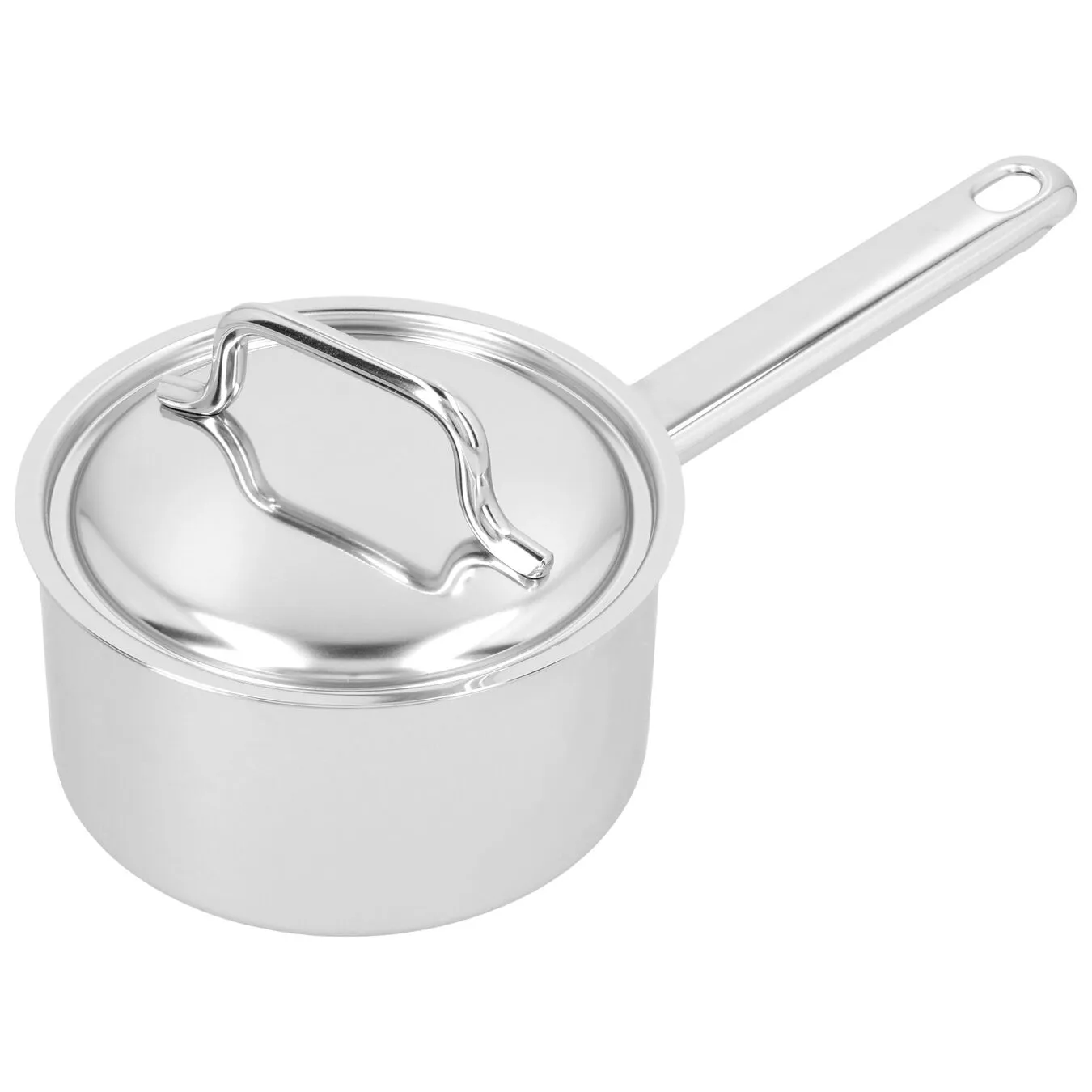 Il design lineare incontra la tecnologia innovativa della serie Apollo di Demeyere. La pentola Demeyere è un utile aiuto in cucina, che vi consente di preparare le vostre ricette risparmiando energia grazie alle tecnologie più moderne. La casseruola misura 14 cm di diametro, è alta 7 cm e può contenere fino a un litro. La caratteristica principale della casseruola è la base InductoBase. Il materiale a sette strati garantisce una distribuzione del calore rapida e uniforme. La pentola è fino al 30% più efficiente se utilizzata su piani cottura a induzione, grazie alla tecnologia TriplInduc®. La padella può inoltre essere utilizzata su tutti i tipi di fornelli. Il manico ergonomico in acciaio inossidabile garantisce una presa sicura. Particolare attenzione è stata dedicata al design di questa pentola, per renderla più facile da pulire e garantire un’igiene ottimale. La pentola è stata impreziosita con la finitura in Silvinox®, per evitare che lo sporco si attacchi. Potete cucinare le vostre ricette e risparmiare energia cucinando con una pentola della serie Apollo, non importa che siate un cuoco dilettante o un professionista.
