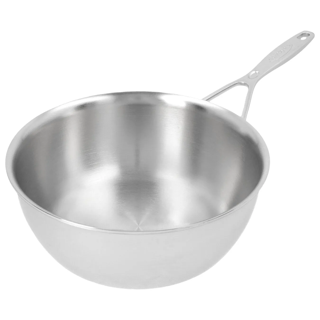 La padella conica per sauté si distingue per la sua forma particolare, che si allarga nella parte superiore. Il diametro della base di 16,5 cm si estende fino a 24 cm sul bordo superiore, consentendovi di utilizzare comodamente una frusta. Ciò significa che si possono mescolare salse cremose o frullare creme e mousse fino a renderle leggere e spumose. La padella conica per sauté è pensata principalmente per la preparazione di salse, ma in questa padella da 24 cm si possono preparare anche altri piatti. La casseruola ha una capacità complessiva di 3,3 litri. Progettata dal designer belga Stefan Schöning, questa pentola della gamma Industry si ispira alle pentole puriste americane. Il design combina un’elevata funzionalità con linee eleganti. La casseruola è realizzata interamente in materiale a 5 strati di alta qualità. Questo materiale è ideale per le pentole per sauté, poiché la combinazione di diversi strati di acciaio inossidabile e alluminio conduce il calore dalla piastra di cottura in modo eccellente e uniforme. Anche le salse più complicate possono essere preparate con successo. È possibile utilizzare questa padella conica per sauté su tutti i tipi di piani di cottura, compresi i piani a induzione. La pulizia è facile e veloce, grazie all’acciaio inossidabile trattato con Silvinox®. La finitura in Silvinox® protegge i vostri nuovi utensili da cucina dallo scolorimento e favorisce la facile rimozione delle impronte digitali, mantenendo al tempo stesso la lucentezza tipica dell’acciaio inossidabile. La padella conica per sauté di Demeyere sarà un pratico accessorio della vostra cucina per molto tempo.
