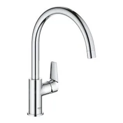 Regalate alla vostra cucina un aiuto pratico ed elegante. Il miscelatore a leva per lavello GROHE BauEdge colpisce per il suo aspetto minimalista, che sottolinea l’aspetto brillante delle superfici cromate. Queste sono trattate con la tecnologia GROHE StarLight, che mantiene a lungo la loro lucentezza e allo stesso tempo supporta la loro resistenza ai graffi o all’accumulo di sporco. Il rubinetto della cucina colpisce anche per una serie di caratteristiche che ne aumentano l’efficienza e ne mantengono la durata e affidabilitá a lungo. Lo scarico alto a forma di “C” consente di riempire facilmente contenitori piú grandi lasciando spazio sufficiente per lavorare dentro e intorno al lavello.