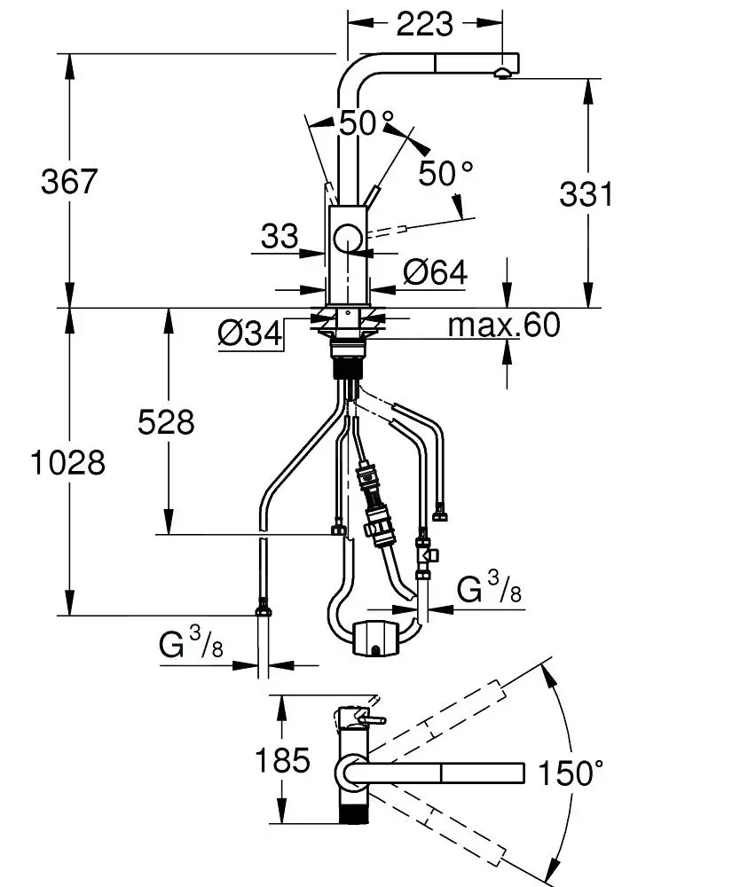 Rubinetto cucina a leva con funzione filtro e aeratore estraibile