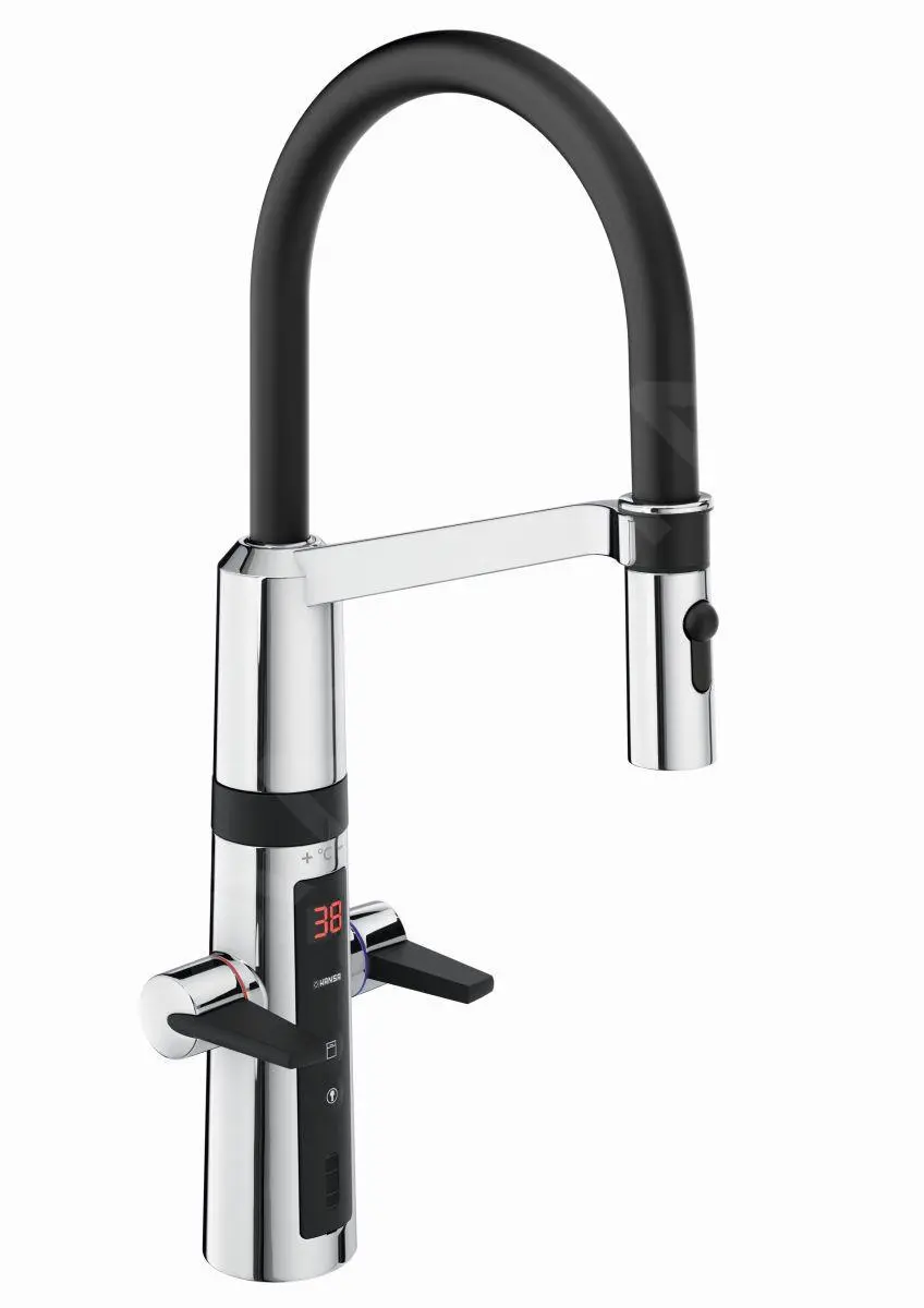 Miscelatore Hybrid per lavello, DN15 con braccio di erogazione flessibile, rialzato
