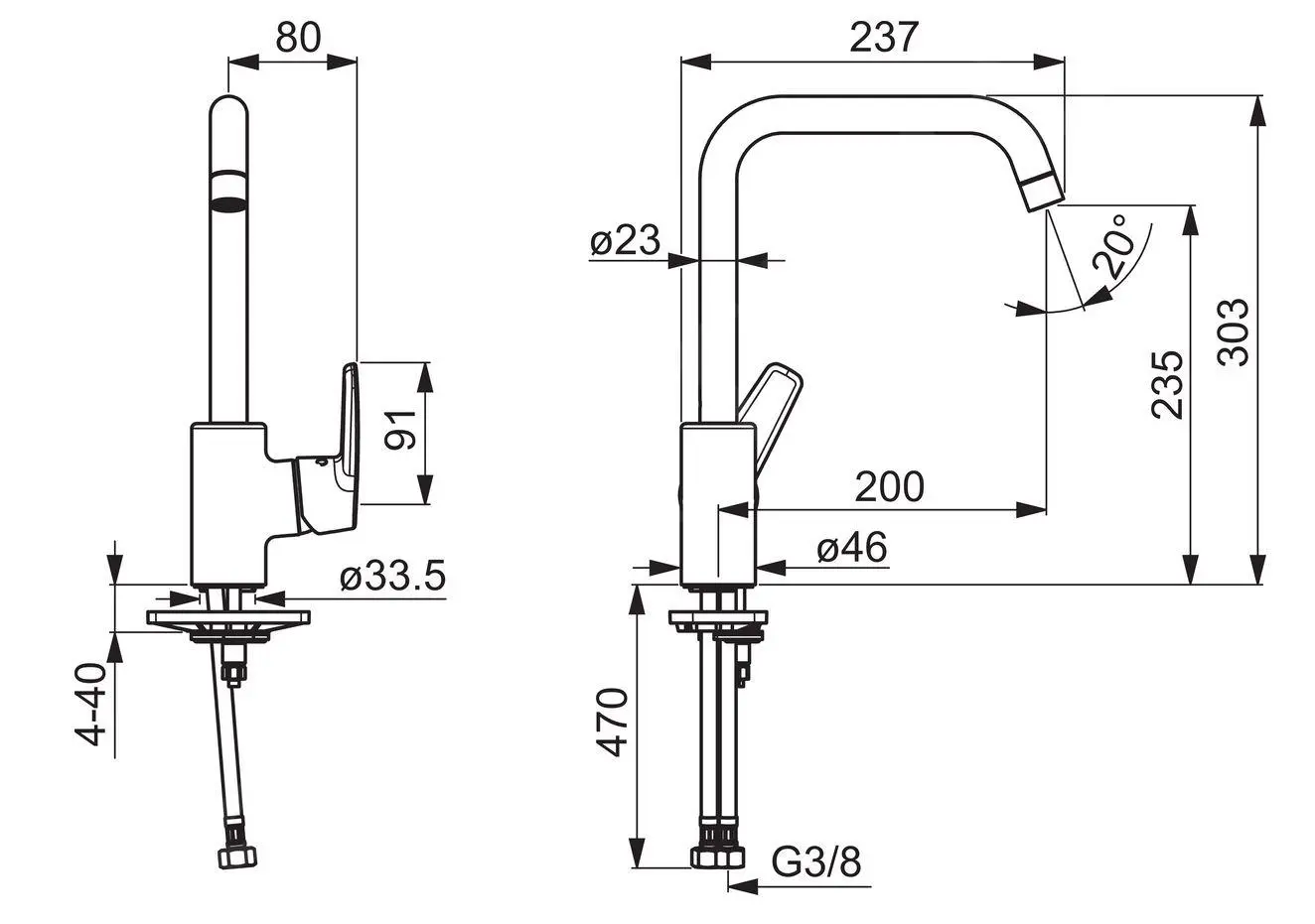 - collegamento tramite flessibili ad alta pressione G 3/8