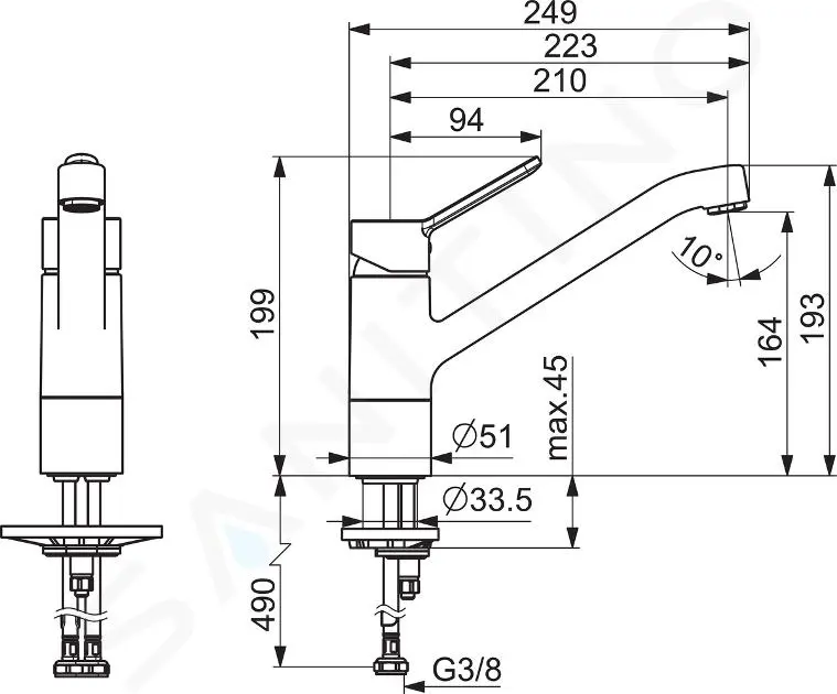 - collegamento tramite flessibili ad alta pressione G 3/8