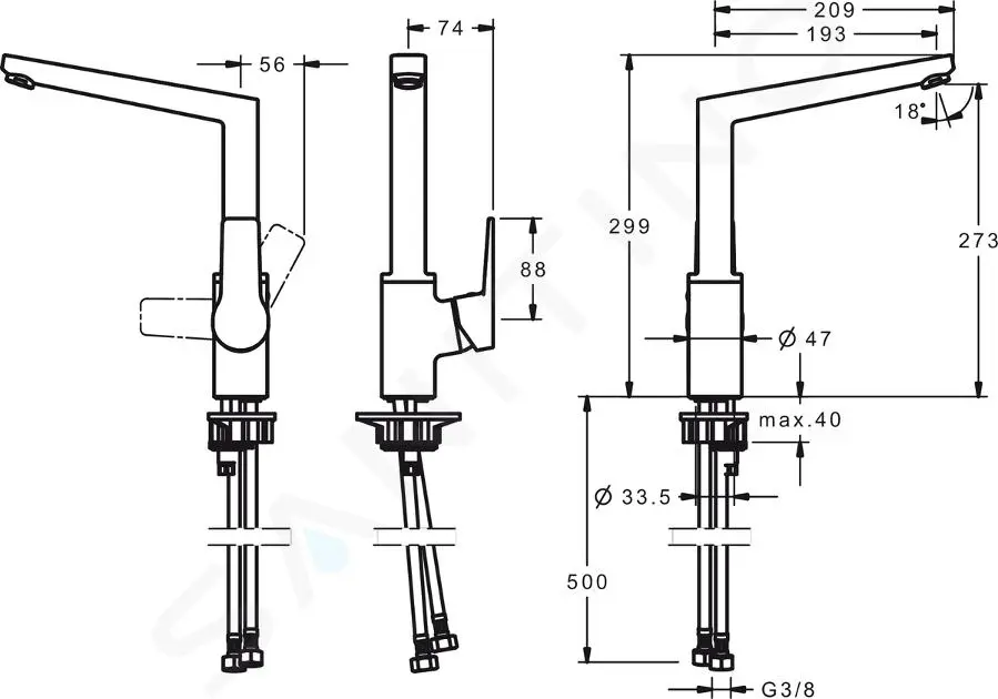 - collegamento tramite flessibili ad alta pressione G 3/8