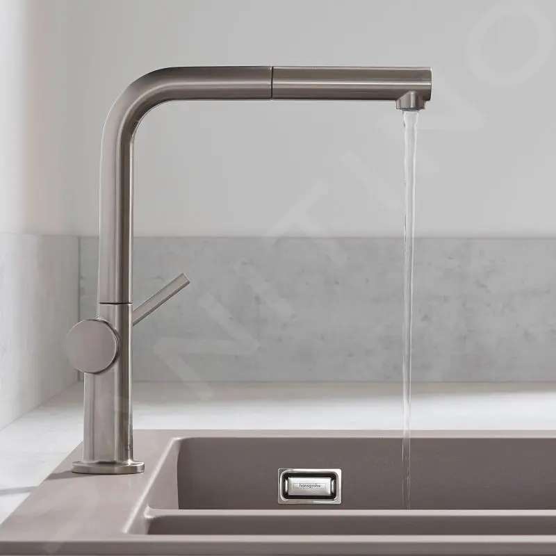 Il miscelatore può essere ruotato in 4 posizioni: 60°, 110°, 150° o 360°. Il flusso di 7 litri d’acqua al minuto lo rende uno dei rubinetti più economici. Il rubinetto da cucina hansgrohe Talis è dotato dell’ingegnoso sistema sBOX, che consente di riporre il flessibile nel mobile inferiore sotto il lavello. Il flessibile può essere estratto fino a una lunghezza di 76 cm. Garantisce un lavoro confortevole e libertà di movimento intorno al lavello. Grazie alla sua forma piatta (meno di 30 mm), sBOX può essere installato anche in condizioni ristrette.