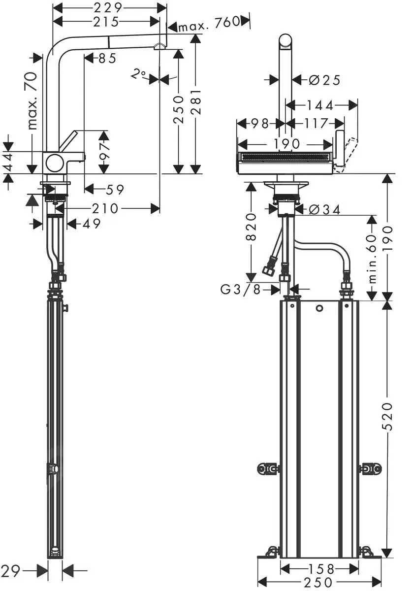 - metodo di montaggio: tubo flessibile di alimentazione G 3⁄8