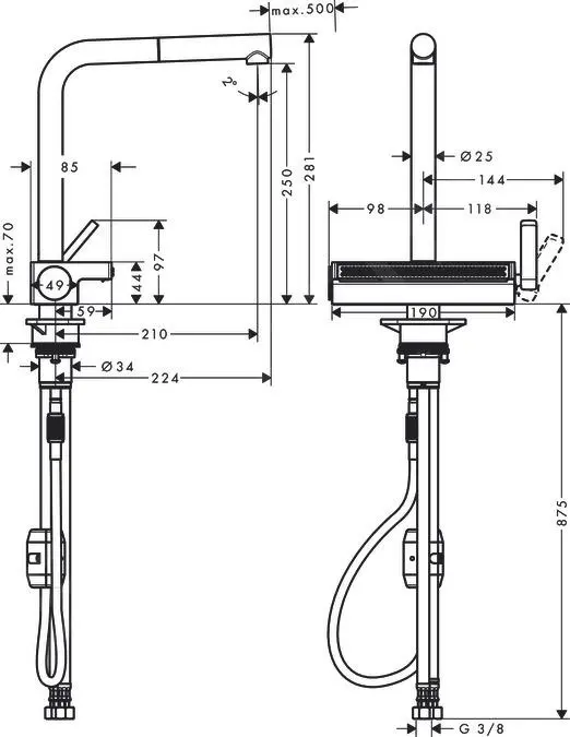 - metodo di montaggio: tubo flessibile di alimentazione G 3⁄8