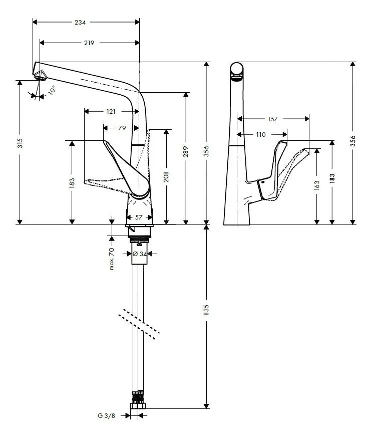 Goditi il comfort offerto dal nuovo miscelatore da cucina. ComfortZone 320 offre tanto spazio e un raggio d’azione più ampio per le attività quotidiane in cucina. La ComfortZone corrisponde approssimativamente alla distanza tra il braccio di erogazione del miscelatore e il bordo inferiore espresso in millimetri.