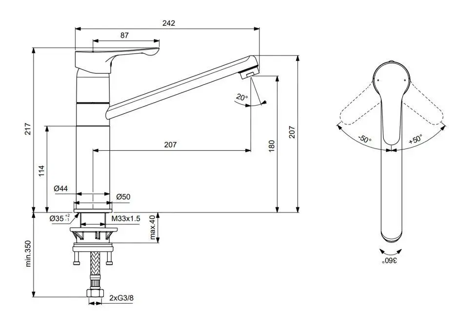 - leva di metallo con funzione CLICK che limita il getto d’acqua per risparmiare sui consumi