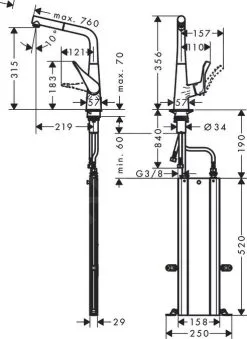 Hansgrohe M71 – Miscelatore Da Lavello Metris Select Con Doccetta Estraibile, Simil Inox 73822800
