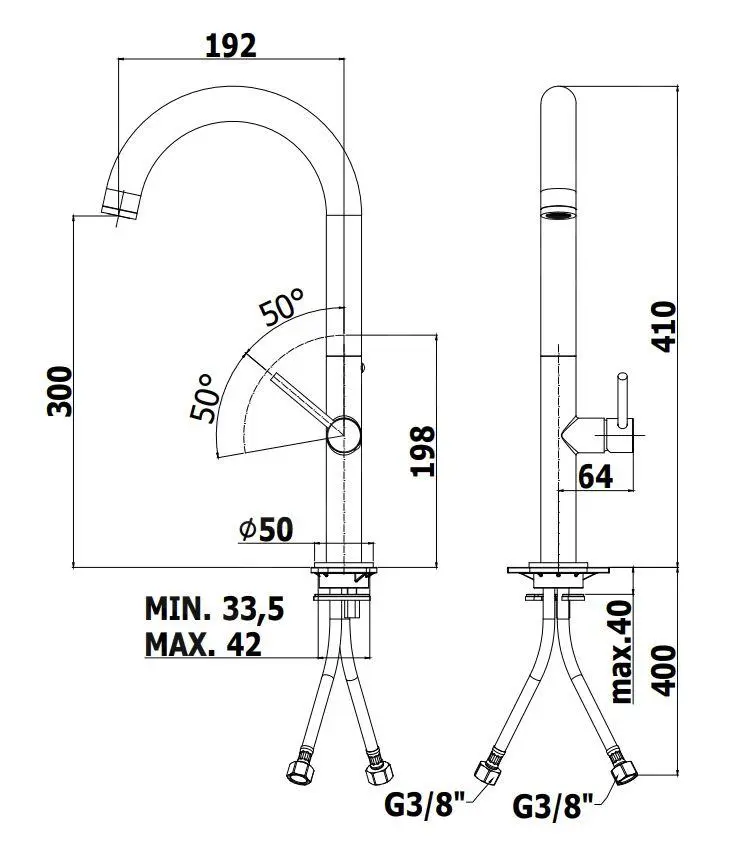 - set di 2 tubi flessibili in acciaio inox G 3/8”