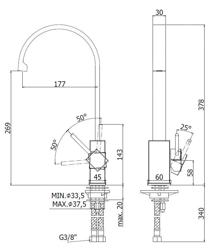 - set di 2 tubi flessibili in acciaio inox G 3/8”