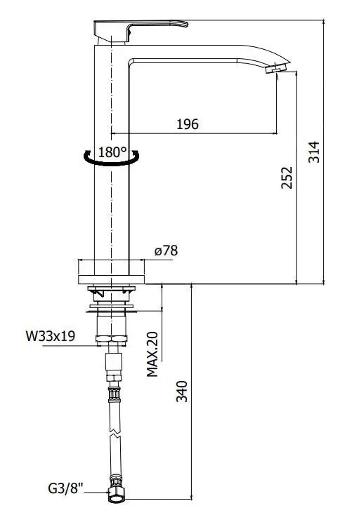 - set di 2 tubi in acciaio inox G 3/8″ per il collegamento alle valvole ad angolo, lunghezza 45 cm