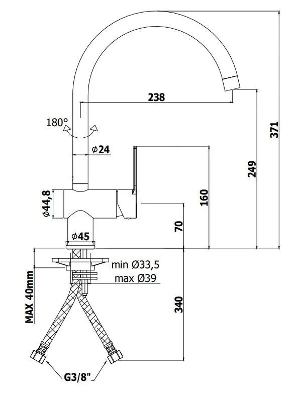 - tubo flessibile di connessione in acciaio inox G 3/8”
