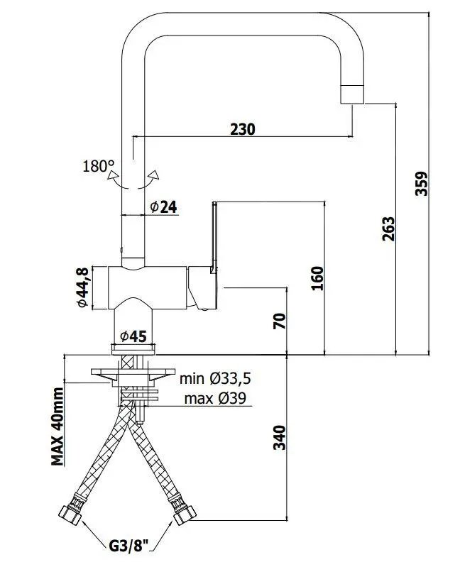 - tubo flessibile di connessione in acciaio inox G 3/8”